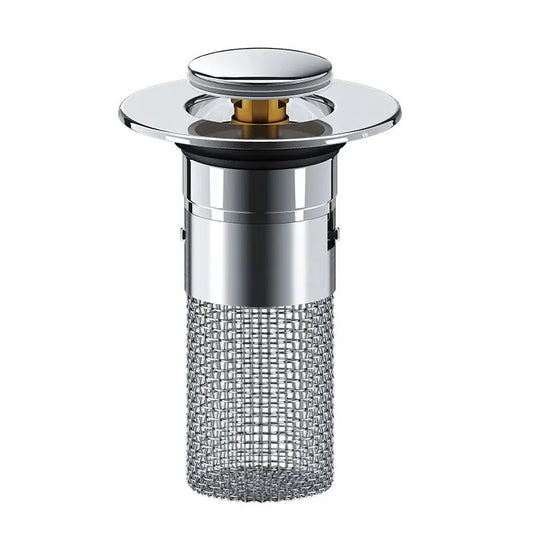 Stainless steel press-type sink drain plug with odor-proof bouncing core - VELEO
