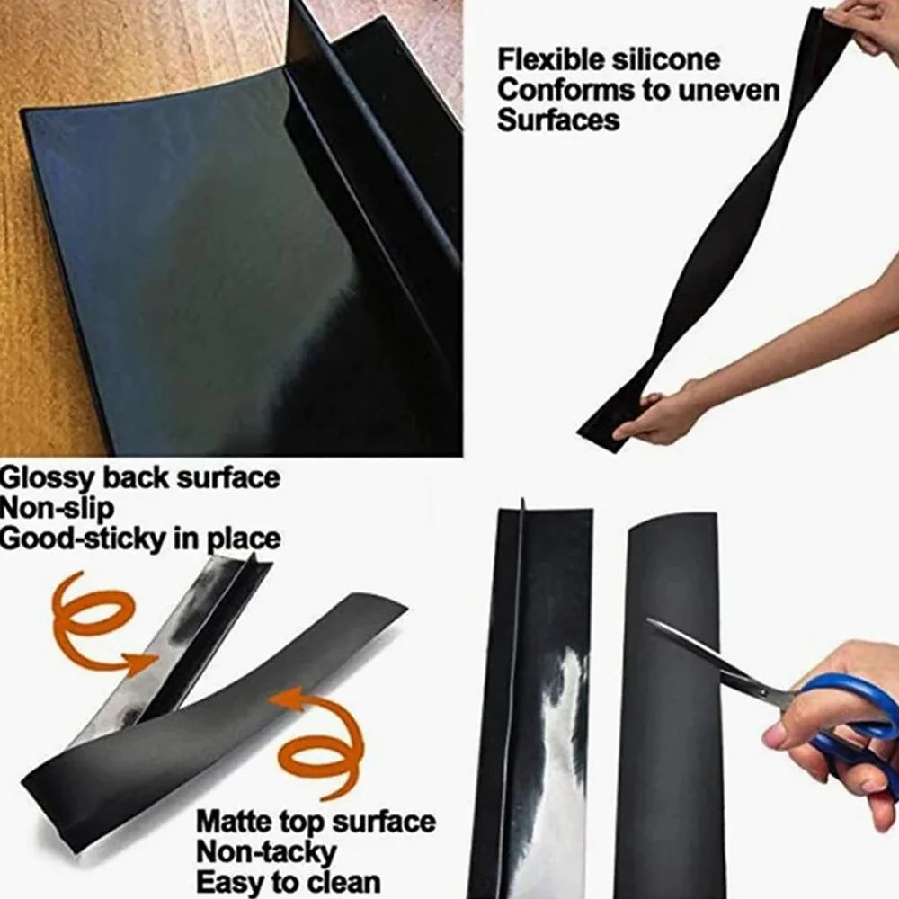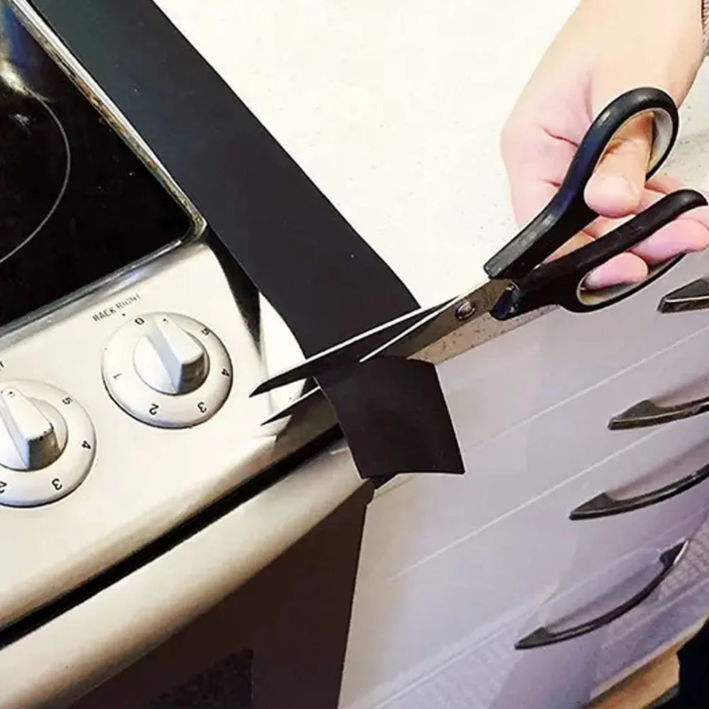 Seals the gap between stove and counter to block oil, food debris, and liquids